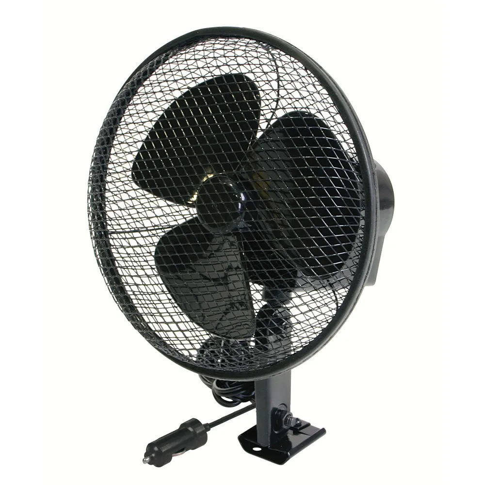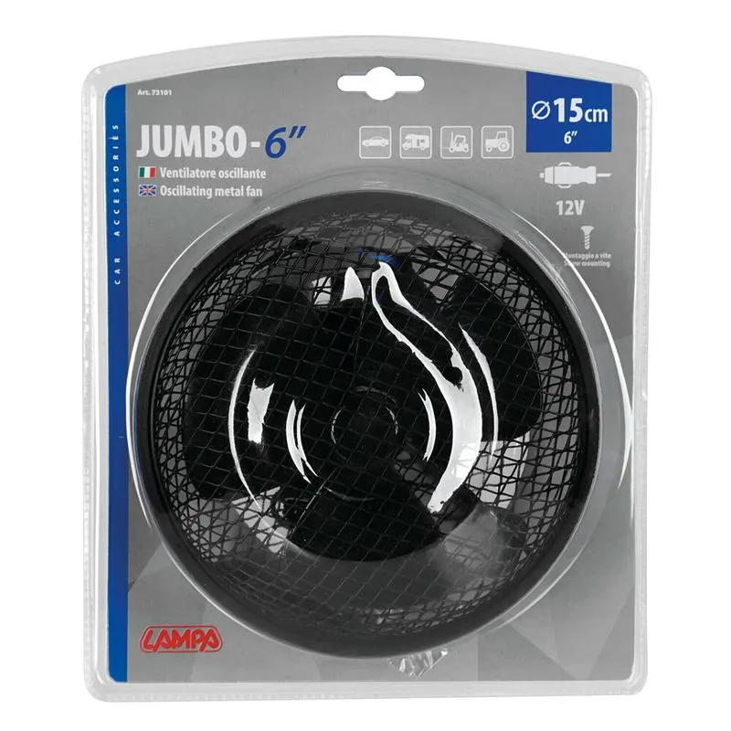Ventilator metalik oscilues i makin├½s Jumbo ├ÿ 6ÔÇØ – 12V.Gril├½ dhe baz├½ metalike. 15 cm diamet├½r