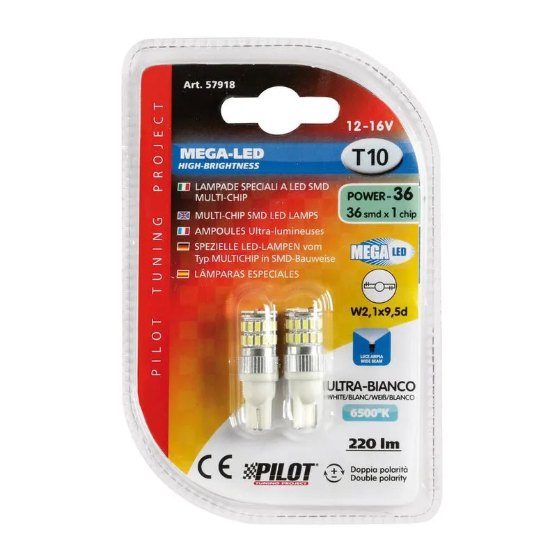 12/16V Mega-Led 36 – 36 SMD x 1 ├ºip – (T10) – W2,1×9,5d – 2 cop├½ – D/Blister – E bardh├½ – Polaritet i dyfisht├½