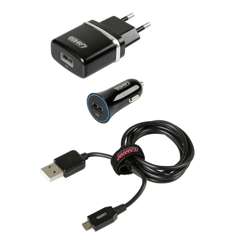 Kit Micro Usb 3 n├½ 1 – 12/24 V + 230 V.Karikues USB n├½ sht├½pi (1000 mA).Karikues USB (1000 mA) me tregues Led.Kabllo rimbushjeje dhe sinkronizimi Micro USB (100 cm).
