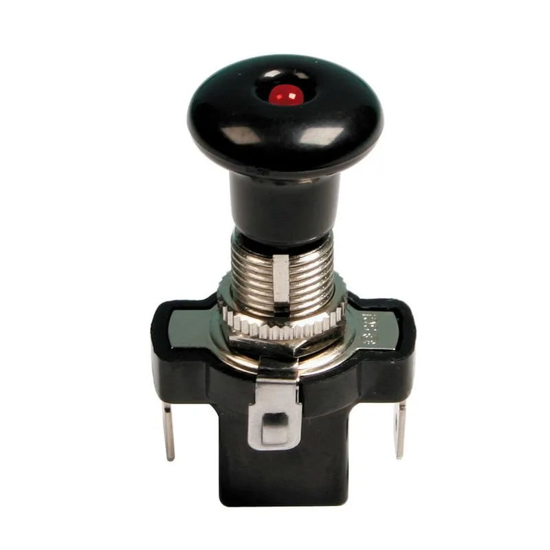 ├çel├½si shtyt├½s me drit├½ Led – 12/24V – E kuqe – 10A.10A max. Funksioni ON/OFF. 3 terminale. Vrima ├ÿ 12,2 mm. Trash├½sia maksimale 6 mm.